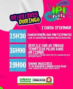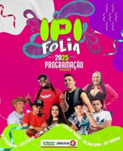 A prefeitura de Ipiranga do Piauí, através da Secretaria Municipal de Cultura apresenta o IPI FOLIA 2025!