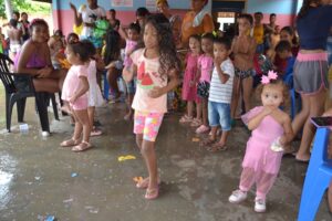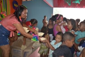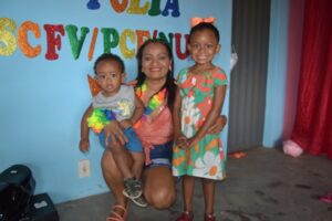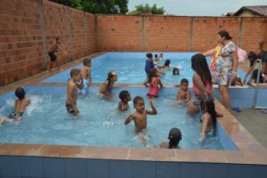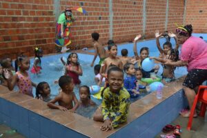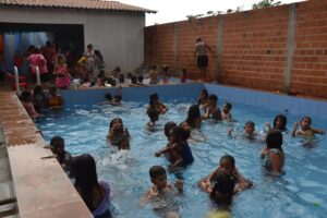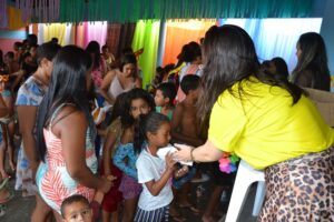 Durante o evento, as crianças participaram de brincadeiras, banho de piscina, e ainda, ganharam pipoca, cachorro quente e refrigerante.