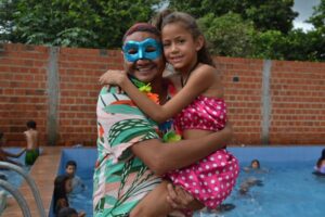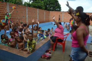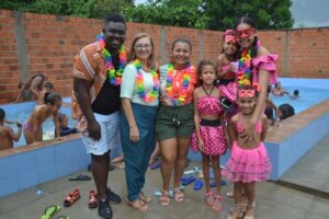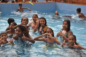 Já Maria Vitória, de 09 anos, disse que estava acompanhada da prima Gisele e se sentindo muito bem no evento, onde além de brincar e banhar na piscina, também saboreou o lanche distribuído.