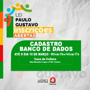 Byadminfevereiro 14, 2025A Prefeitura Municipal de Ipiranga do Piauí – PI, abre hoje (07/03/2024)as inscrições da Lei Paulo Gustavo, Lei Complementar n° 195 de 8...