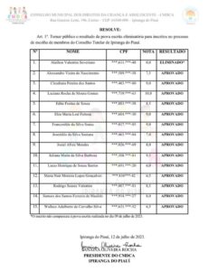 Byadminfevereiro 14, 2025O Conselho Municipal dos Direitos da Criança e do Adolescente de Ipiranga do Piauí (CMDCA) divulgou nesta quarta-feira, 12 de julho, o resultado...
