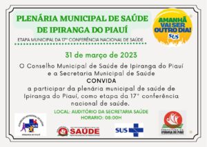 Byadminfevereiro 14, 2025ETAPA MUNICIPAL DA 17º CONFERÊNCIA NACIONAL DE SAÚDE 31 de Março de 2023 O Conselho Municipal de Saúde de Ipiranga do Piauí e...