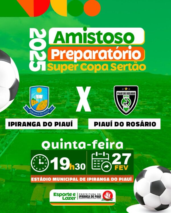 Byevanilsonfevereiro 28, 2025Nesta quinta-feira a nossa seleção de futebol, fará um amistoso com o time Piauí do Rosario da cidade de Oeiras. Este amistoso faz...