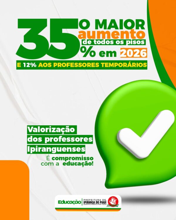 Ipiranga do Piauí anuncia reajuste histórico de 35% para professores efetivos