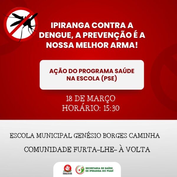 ByLuana Paivamarço 19, 2025Ipiranga Contra a Dengue, A Prevenção é a Nossa Melhor Forma Ação do Programa Saúde na Escola (PSE) 18 de Março Escola Municipal...