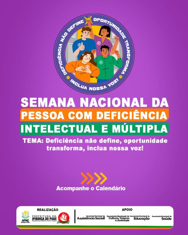 Byevanilsonagosto 20, 2025Semana Nacional da Pessoa com Deficiência Intelectual e Múltipla Com o tema “Deficiência não define, oportunidade transforma, inclua nossa voz!”, celebramos a inclusão,...