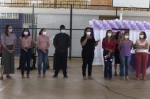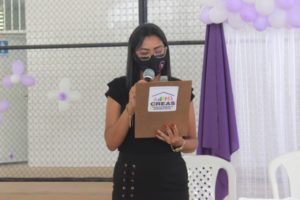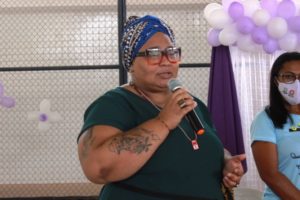 Logo após a composição da mesa de honra com a fala das autoridades, aconteceu uma palestra com a gerente de promoção dos direitos e da Autonomia das Mulheres do CEPM, Joelfa Farias.