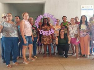 A coordenadora Maria Antônia junto com Liliane Vieira e Nadielli Suelma também explicaram sobre os direitos dos idosos.