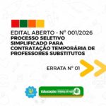 EDITAL ABERTO – N 001/2026 PROCESSO SELETIVO SIMPLIFICADO PARA CONTRATAÇÃO TEMPORÁRIA DE PROFESSORES SUBSTITUTOS ERRATA Nº2