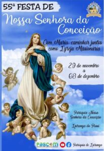 Este ano, a comunidade vai celebrar 120 anos de devoção à Nossa Senhora da Conceição e a 55ª edição do festejo, que refletirá sobre o tema “Com Maria, caminhar juntos como Igreja Missionária.”