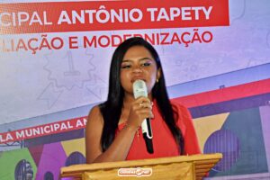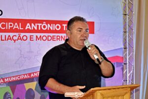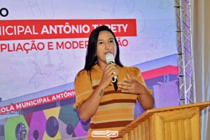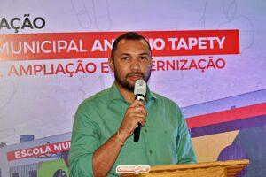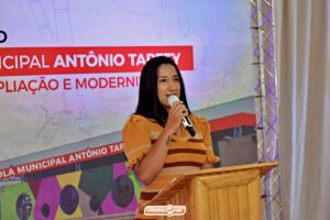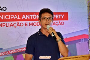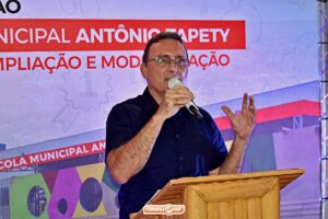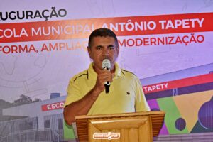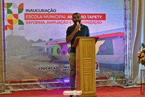 Em seu discurso, o secretário de Educação de Ipiranga do Piauí, Gilberto Vieira, destacou os avanços da educação pública municipal e comentou sobre os investimentos feitos na Escola Municipal Antônio Tapety.