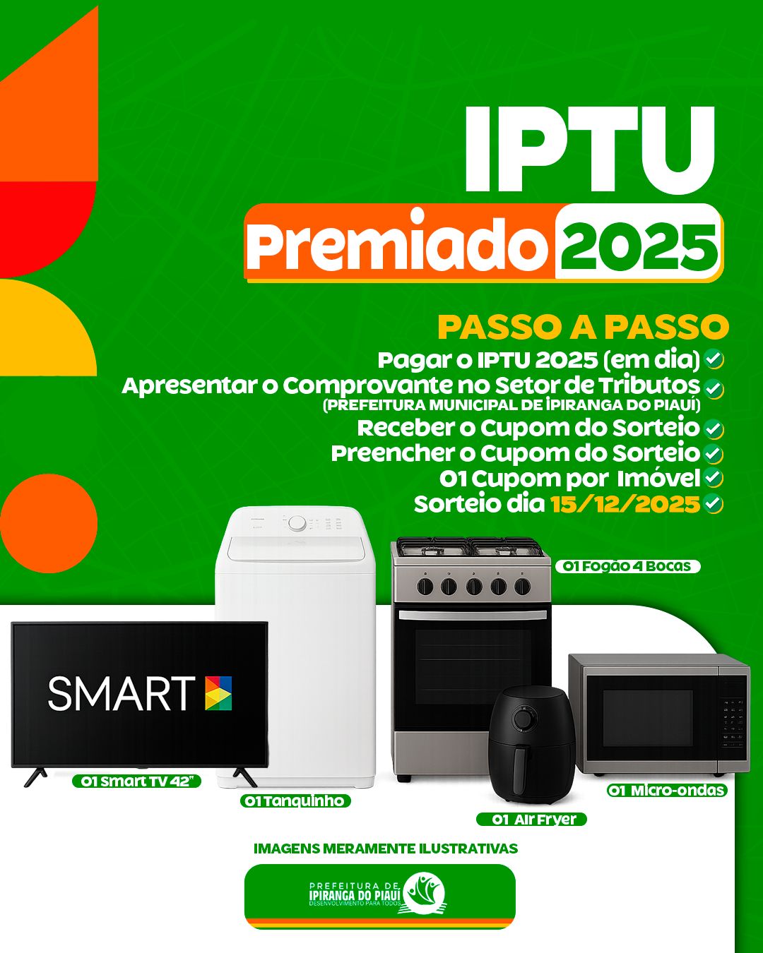 IPTU Premiado 2025 A Prefeitura de Ipiranga do Piauí informa à população que foi publicado o Decreto nº 036/2025, que institui oficialmente o Programa IPTU Premiado.