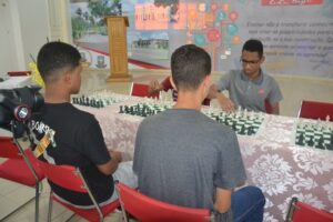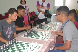 Pela tarde, a programação continuou com o campeonato de xadrez no Auditório Cida Beija. O aluno vencedor do campeonato foi Rodrigo de Moura Santos, da escola municipal Santa Catarina.