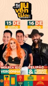 Conforme o gestor municipal, na segunda-feira, 15 de julho, subirá ao palco a banda Moleca 100 Vergonha, e na terça-feira, 16 de julho, a atração será Felipão e Forró Moral.