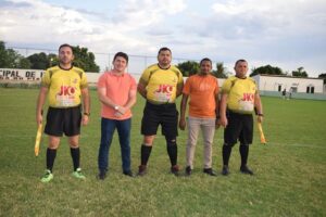 Prefeito Elvis com árbitros da partida