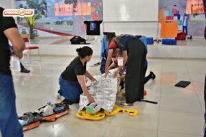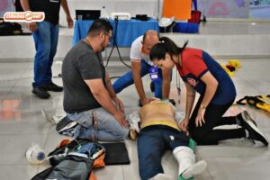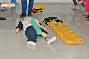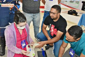 Em primeiro momento, o curso em Emergência Pré-Hospitalar contou com parte teórica sobre emergências traumática, e logo em seguida, os profissionais participaram da simulação de atendimentos a pacientes que sofreram traumas, fraturas e hemorragias.