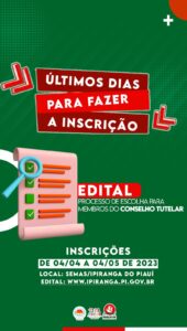 ÚLTIMOS DIAS PARA FAZER A INSCRIÇÃO